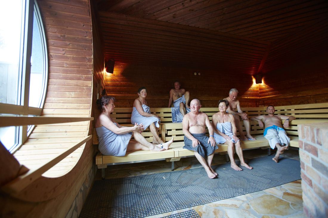 Ihre Entdeckungsreise beginnt in der Panorama-Sauna. Durch eine große Glasfront können die Saunierenden beim entspannenden Schwitzen unsere wunderschöne Außenanlage und den Gartenteich genießen.