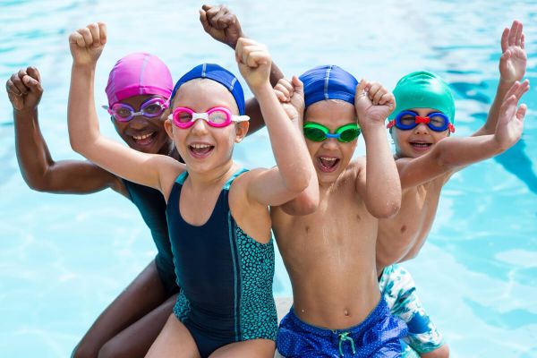Im Piratenkurs lernen die Kinder die grundlegenden Elemente der Schwimmlagen, Brust, Rücken, Streckentauchen und Springen.